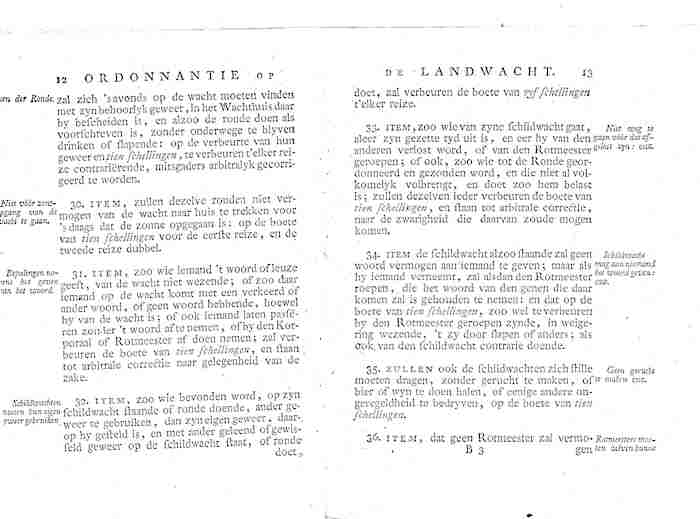 Als een van burgerwachten van welke rang ook maar het wachtwoord is vergeten : bij nalatigheid een boete van 10 schellingen.